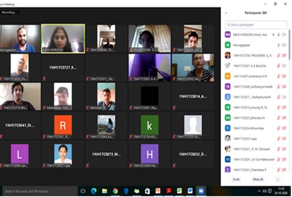 Department of Computer Science and Engineering arranged the following expert lecture from industry for students on 10-Oct-2020. 5G Technology for 3rd sem CSE “B” section by Mr.Vinoth, Sr. QA Engineer, CISCO Systems.