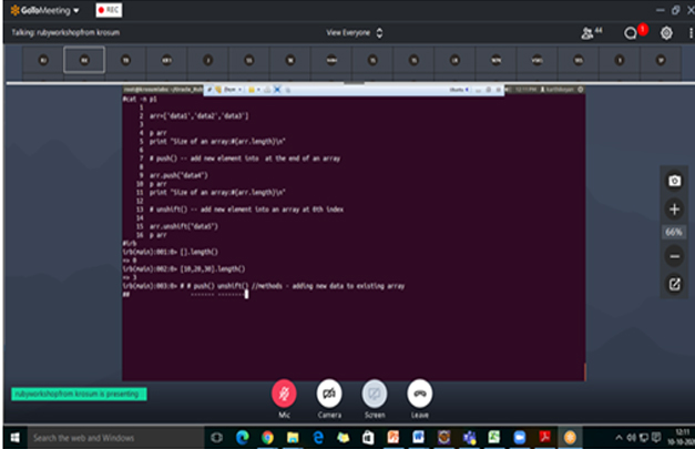 Department of Computer Science and Engineering in association with Computer Society of India arranged a hands-on workshop on 10-Oct-2020 for 5th semester CSE students on Role of Ruby in Web Applications.