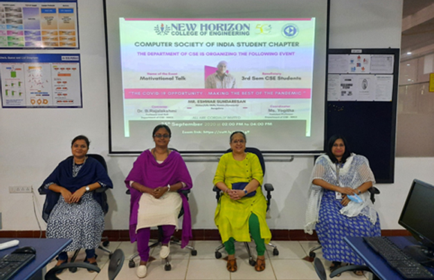Department of Computer Science and Engineering in association with CSI Student chapter organized Online motivational talk on the topic “The COVID-19 opportunity: Making the best of the Pandemic” for 3rd semester A and D section students on 25/9/2020 from 2.00 PM to 4.00 PM.