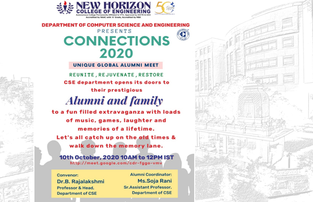 Department of CSE in association with CSI Student chapter organized a Unique Global Alumni Meet – CONNECTIONS 2020 on 10th October 2020 from 10AM to 1PM.