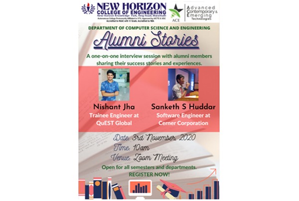 The event “Alumni Stories” was conducted on 3rd November, 2020. It was a on-on-one interview session with alumni members sharing their success stories and experiences.