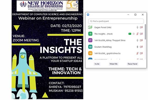 The Entrepreneurship cell of the department of Computer Science and Engineering organized online webinar on Entrepreneurship titled “The Insights” on December 2nd, 2020from 12:00 noon to 1:00 P.M.