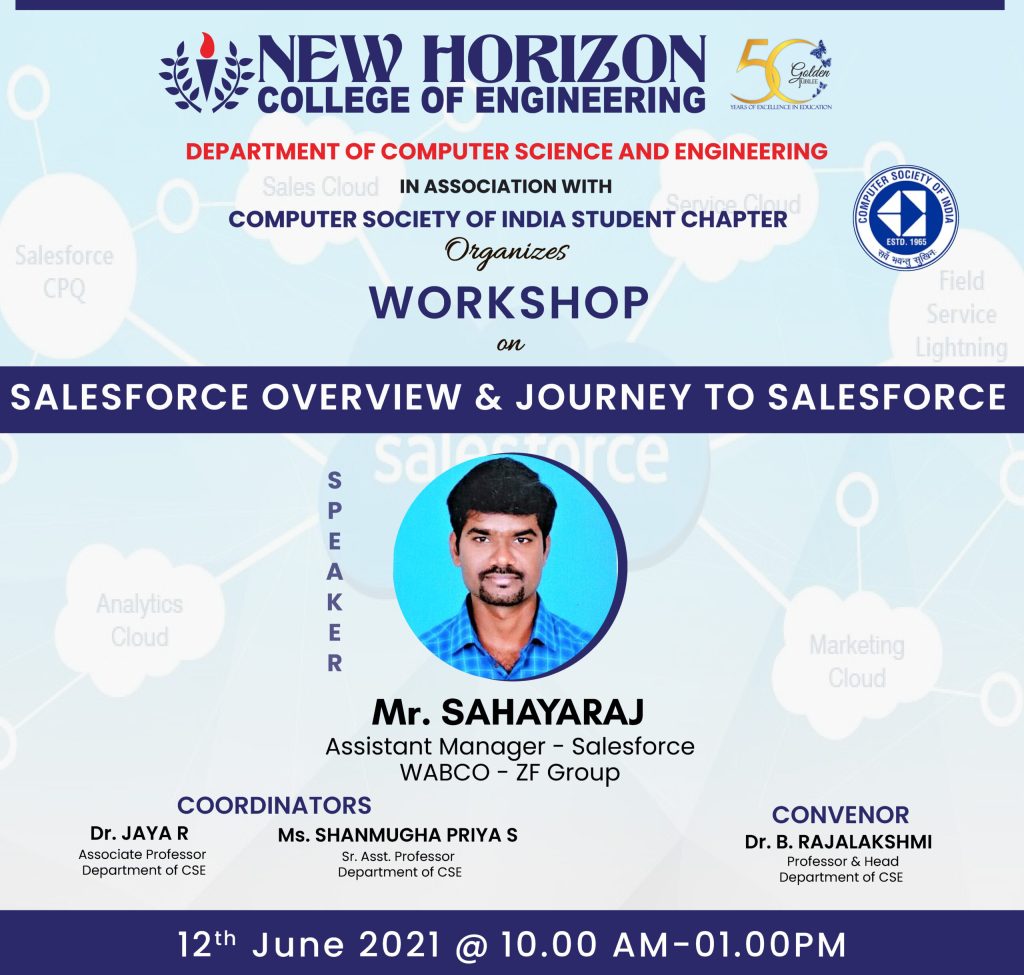 The Department of Computer Science and Engineering organized a workshop on Salesforce overview & Journey to Salesforcefor the 6th semester CSE students.
