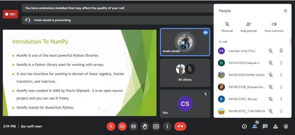 The Department of Computer Science and Engineering organized an expert lecture on Numpy and Pandas in Python for the 6th semester CSE students on the 3rd of July, 2021.