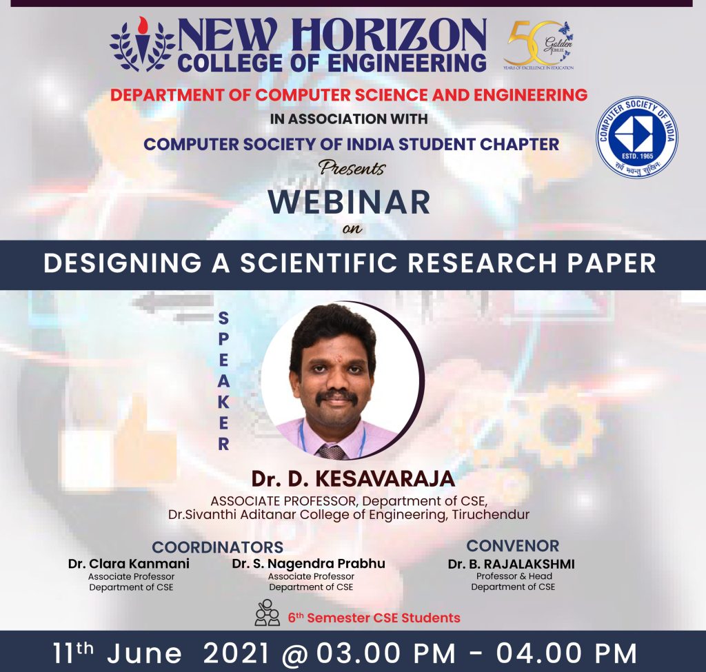 The event was started by welcoming Speaker, HOD, and Participants and with a brief introduction of the Speaker, Dr.D. Kesavaraja, Associate Professor, Department of CSE, Dr.SivanthiAditanar College of Engineering, Tiruchendur; The event was organized to address 6th-semester students of CSE, were total of 209 students were participated in the live webinar.