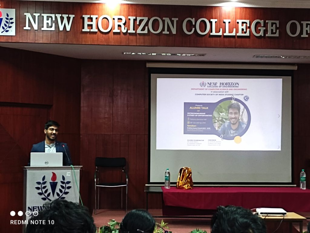 Department of CSE in association with CSI Student chapter organized “ALUMNI TALK” on 28th Oct 2021, 2 – 4PM. The invited alumni speaker for the event was Mr Prabhat Kumar Prasad, graduate of 2018 batch.