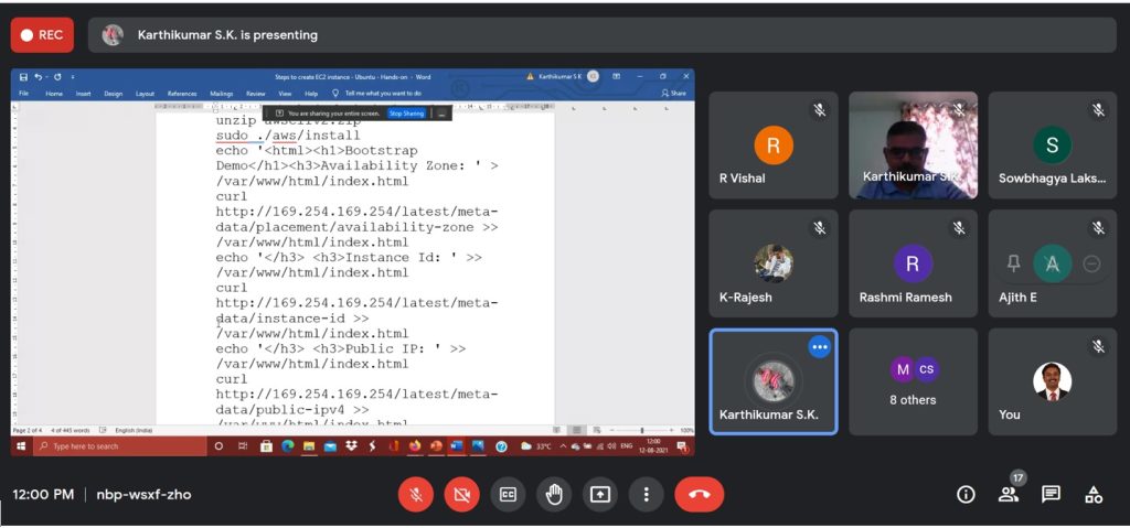 The department of Computer Science and Engineering conducted two days workshop on “Introduction to AWS EC2 and S3” for the students from 12/08/2021 to 13/08/2021.